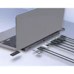 این هاب از درگاه USB-C با توان 100W Power Delivery پشتیبانی میکند تا بتوانید لپتاپ خود را هنگام کار بدون افت شارژ تغذیه کنید. همچنین پورتهای HDMI و DisplayPort امکان اتصال چند مانیتور را با کیفیت بالا فراهم میکنند که تجربه چندوظیفگی و تولید محتوا را بسیار راحتتر میسازد.