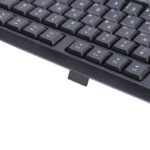 کیبورد این مجموعه از سوئیچ‌های ممبران بهره می‌برد که عملکردی نرم و نسبتا بی‌صدا دارند. این سوئیچ‌ها برای تایپ کردن و انجام کارهای روزمره مناسب هستند، اما برای گیمینگ حرفه‌ای یا تایپ‌های بسیار سریع، ممکن است به اندازه‌ی سوئیچ‌های مکانیکی، دقیق و پاسخگو نباشند. این کیبورد دارای ۱۰۴ کلید و ۱۲ کلید میانبر است. یکی از نکات مثبت این کیبورد، وجود حروف فارسی حک‌شده روی کلیدها است که تایپ فارسی را برای کاربران ایرانی آسان‌تر می‌کند. ماوس این مجموعه از نوع اپتیکال است و دارای ۳ کلید (شامل کلیدهای اصلی و اسکرول) است. دقت این ماوس ۱۲۰۰ DPI است که برای کاربری‌های روزمره و اداری، دقت مناسبی محسوب می‌شود. (در مشخصات محدوده دقت ۸۰۰ تا ۱۶۰۰ ذکر شده که احتمالا اشتباه است و یا اینکه دقت ماوس قابل تنظیم نیست و ثابت و برابر با 1200DPI است.) کیبورد این مجموعه دارای ۱۲ کلید میانبر برای دسترسی سریع به عملکردهای پرکاربرد است. این مجموعه با تمامی سیستم‌عامل‌های رایج سازگار است. این کیبورد دارای استانداردهای سلامت و ایمنی محصول شامل CE /FCC است.